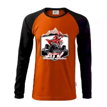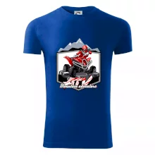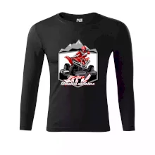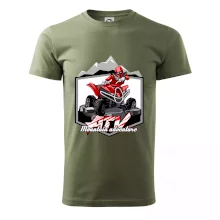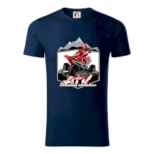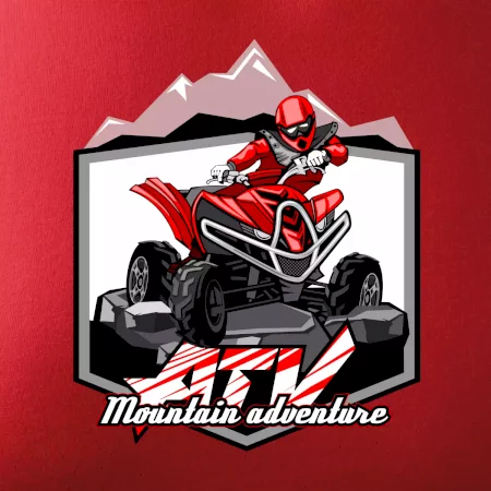 Triko pro motoristy, na kterém je červená čtyřkolka ATV a v pozadí hory. Motoristické triko kde je off road čtyřkolka musí mít doma každý motorista. Triko se čtyřkolkou je vhodný dárek pro motoristu, který má rád adrenalin. Čtyřkolka na triku je jako živá, prostě parádní auto.