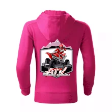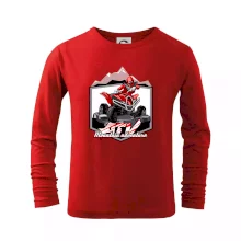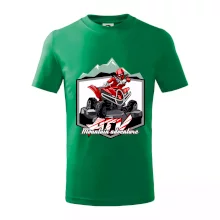Triko pro motoristy, na kterém je červená čtyřkolka ATV a v pozadí hory. Motoristické triko kde je off road čtyřkolka musí mít doma každý motorista. Triko se čtyřkolkou je vhodný dárek pro motoristu, který má rád adrenalin. Čtyřkolka na triku je jako živá, prostě parádní auto.