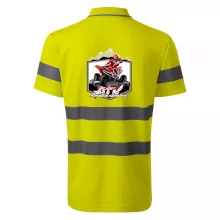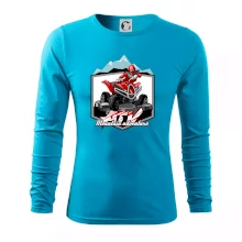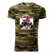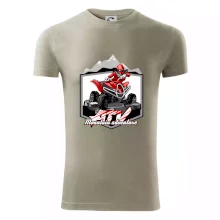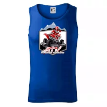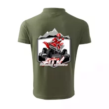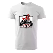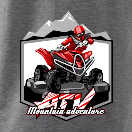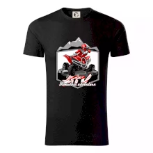 Triko pro motoristy, na kterém je červená čtyřkolka ATV a v pozadí hory. Motoristické triko kde je off road čtyřkolka musí mít doma každý motorista. Triko se čtyřkolkou je vhodný dárek pro motoristu, který má rád adrenalin. Čtyřkolka na triku je jako živá, prostě parádní auto.
