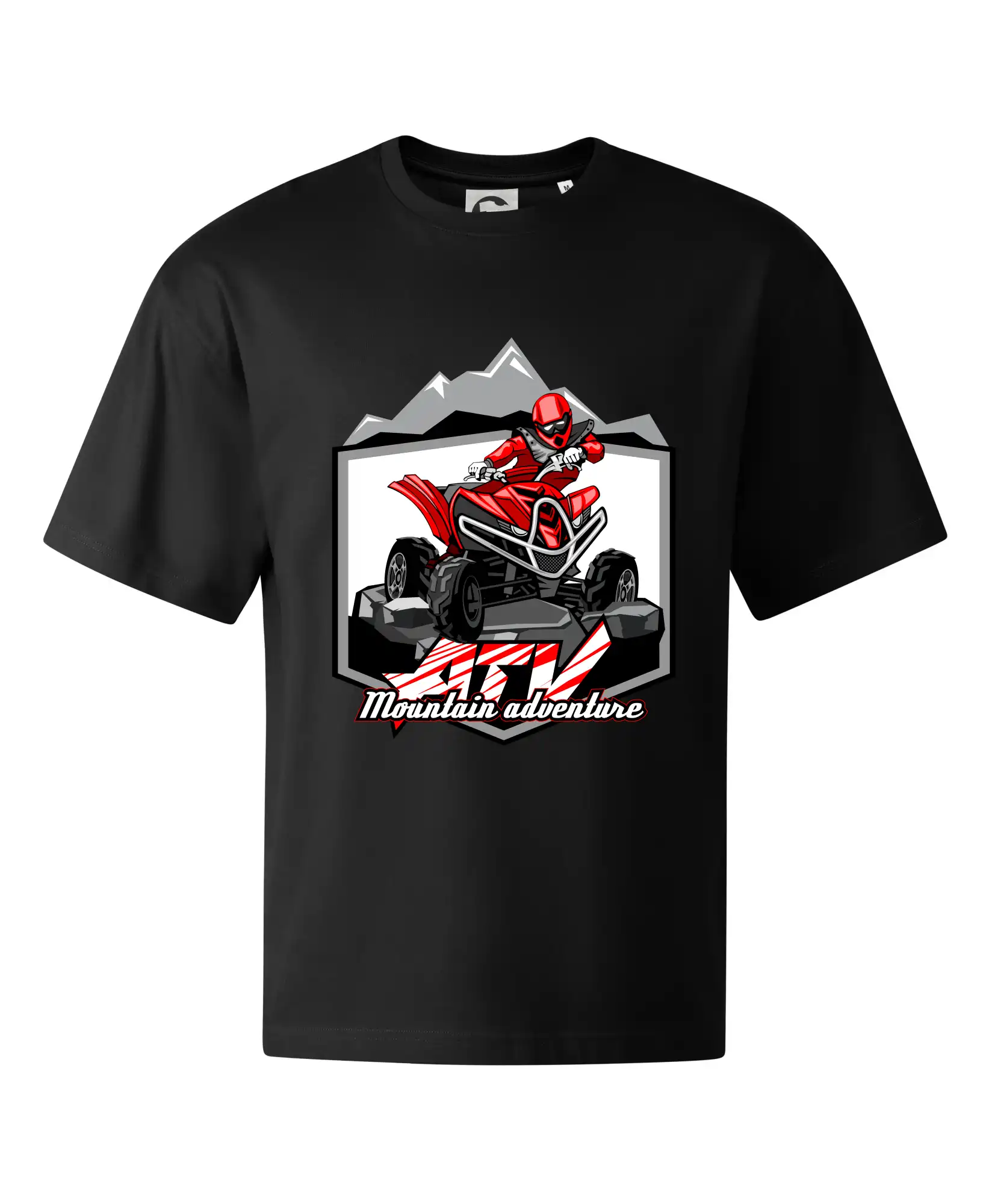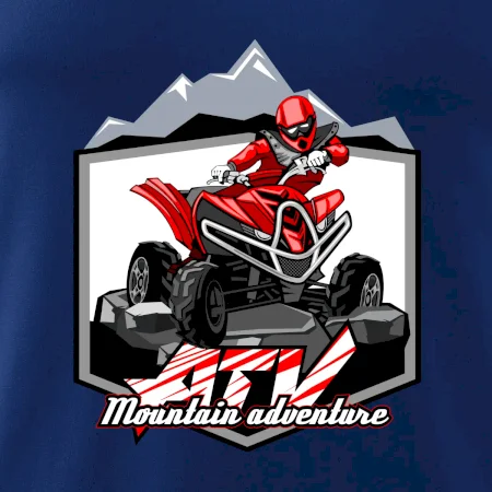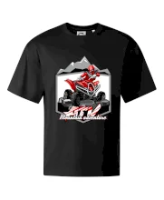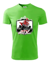Triko pro motoristy, na kterém je červená čtyřkolka ATV a v pozadí hory. Motoristické triko kde je off road čtyřkolka musí mít doma každý motorista. Triko se čtyřkolkou je vhodný dárek pro motoristu, který má rád adrenalin. Čtyřkolka na triku je jako živá, prostě parádní auto.