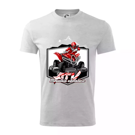 Triko pro motoristy, na kterém je červená čtyřkolka ATV a v pozadí hory. Motoristické triko kde je off road čtyřkolka musí mít doma každý motorista. Triko se čtyřkolkou je vhodný dárek pro motoristu, který má rád adrenalin. Čtyřkolka na triku je jako živá, prostě parádní auto.