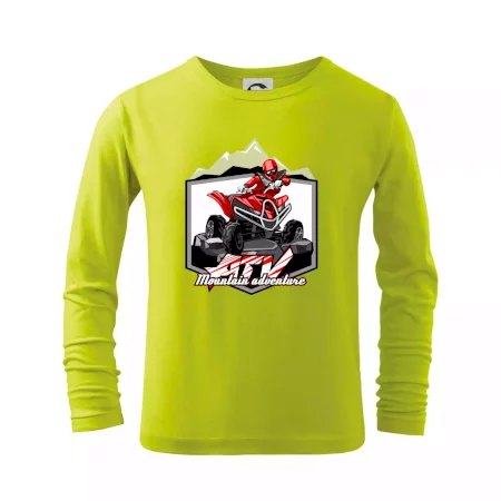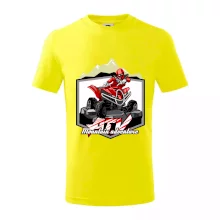 Triko pro motoristy, na kterém je červená čtyřkolka ATV a v pozadí hory. Motoristické triko kde je off road čtyřkolka musí mít doma každý motorista. Triko se čtyřkolkou je vhodný dárek pro motoristu, který má rád adrenalin. Čtyřkolka na triku je jako živá, prostě parádní auto.