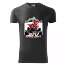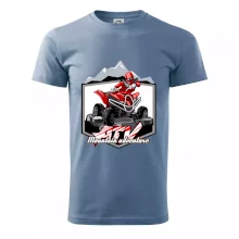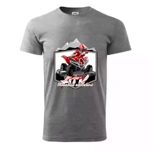 Triko pro motoristy, na kterém je červená čtyřkolka ATV a v pozadí hory. Motoristické triko kde je off road čtyřkolka musí mít doma každý motorista. Triko se čtyřkolkou je vhodný dárek pro motoristu, který má rád adrenalin. Čtyřkolka na triku je jako živá, prostě parádní auto.