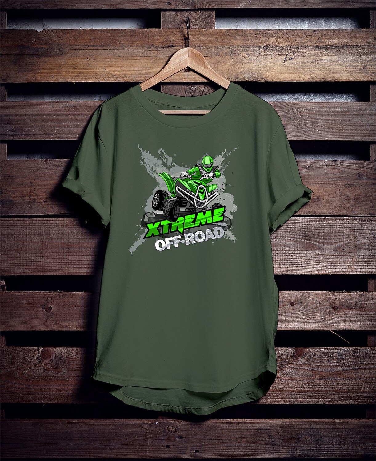 Triko pro motoristy, na kterém je zelená čtyřkolka ATV. Motoristické triko kde je off road čtyřkolka musí mít doma každý motorista. Triko se čtyřkolkou je vhodný dárek pro motoristu, který má rád adrenalin. Čtyřkolka na triku je jako živá, prostě parádní auto.