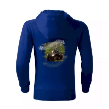 Triko pro motoristu, na kterém je off road čtyřkolka v lese. Triko se čtyřkolkou by doma měl mít každý správný off-road motorista. Triko se čtyřkolkou je vhodný dárek pro motoristu, pro kterého je jízda na čtyřkolce ten pravý adrenalin.