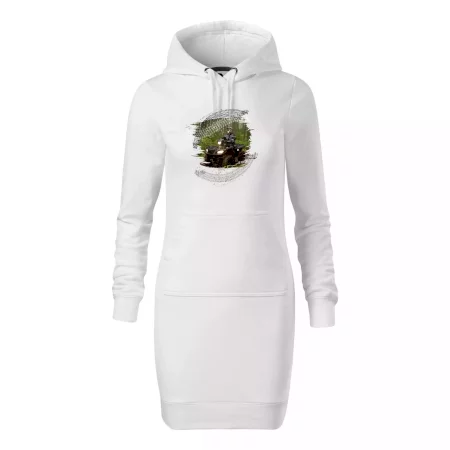 Dámské mikinové šaty MALFINI Snap 419 jsou ideální volbou pro ženy, které hledají pohodlný a stylový kousek pro volný čas nebo každodenní nošení. Lehce vypasovaný střih s bočními švy podtrhuje ženskou siluetu, zatímco kapuce s podšívkou a stahovací šňůrkou dodává ležérní vzhled. Šaty mají délku nad kolena a jsou vybaveny nakládanou kapsou ve stylu „klokanky“. Materiál je měkký a příjemný na dotek díky směsi bavlny a polyesteru s nepočesanou vnitřní stranou.