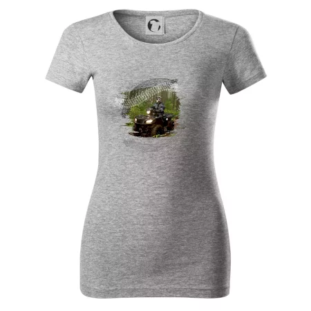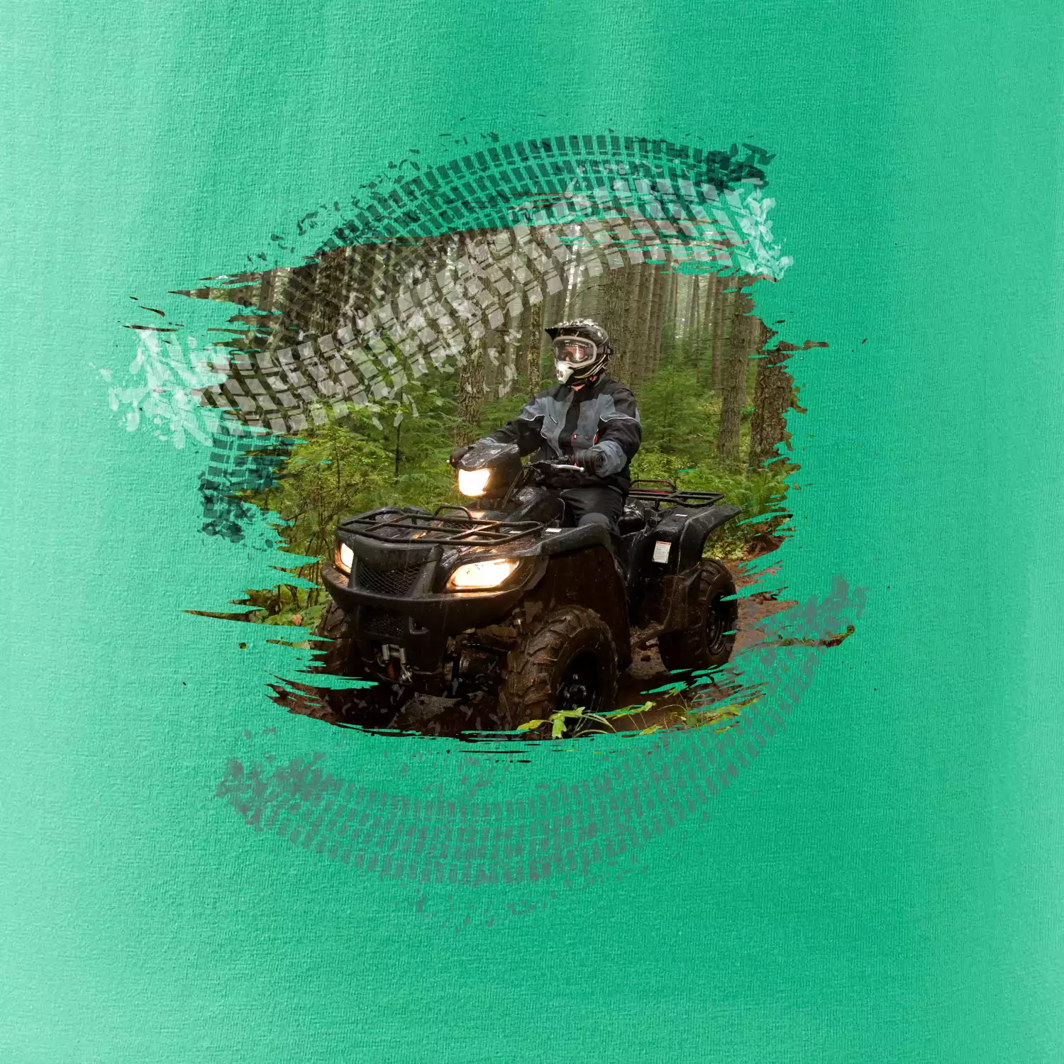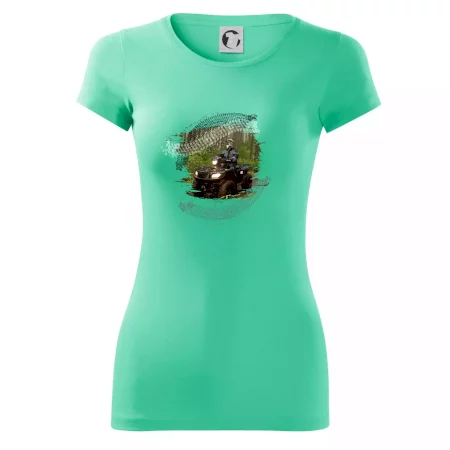 Triko pro motoristu, na kterém je off road čtyřkolka v lese. Triko se čtyřkolkou by doma měl mít každý správný off-road motorista. Triko se čtyřkolkou je vhodný dárek pro motoristu, pro kterého je jízda na čtyřkolce ten pravý adrenalin.