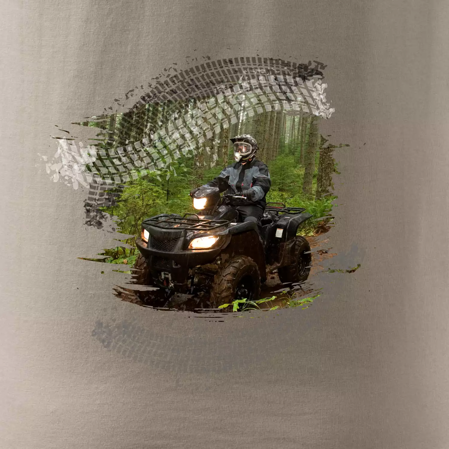 Triko pro motoristu, na kterém je off road čtyřkolka v lese. Triko se čtyřkolkou by doma měl mít každý správný off-road motorista. Triko se čtyřkolkou je vhodný dárek pro motoristu, pro kterého je jízda na čtyřkolce ten pravý adrenalin.