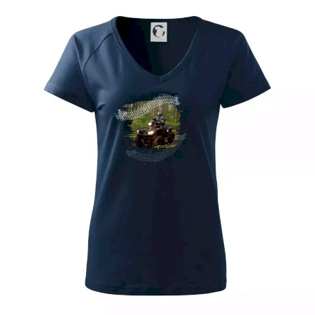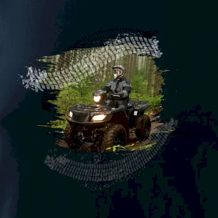 Triko pro motoristu, na kterém je off road čtyřkolka v lese. Triko se čtyřkolkou by doma měl mít každý správný off-road motorista. Triko se čtyřkolkou je vhodný dárek pro motoristu, pro kterého je jízda na čtyřkolce ten pravý adrenalin.