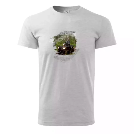 Triko pro motoristu, na kterém je off road čtyřkolka v lese. Triko se čtyřkolkou by doma měl mít každý správný off-road motorista. Triko se čtyřkolkou je vhodný dárek pro motoristu, pro kterého je jízda na čtyřkolce ten pravý adrenalin.