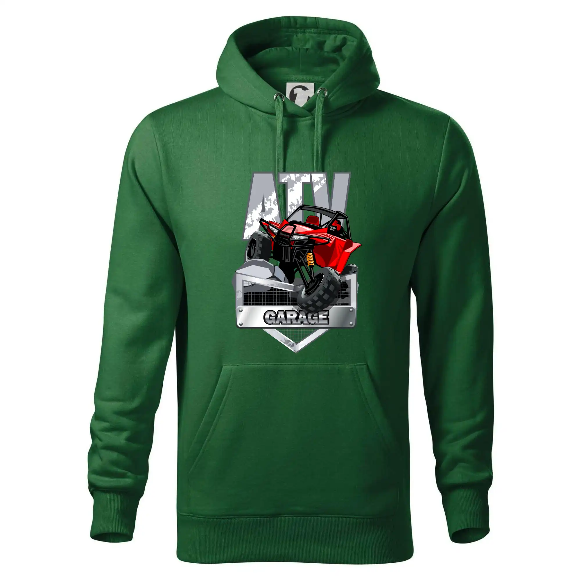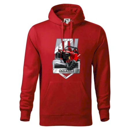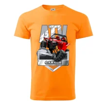 Triko pro motoristy, na kterém je červená čtyřkolka ATV. Motoristické triko se čtyřkolkou musí mít doma každý motorista. Triko s autem je vhodný dárek pro motoristu. Auto na triku je jako živé.