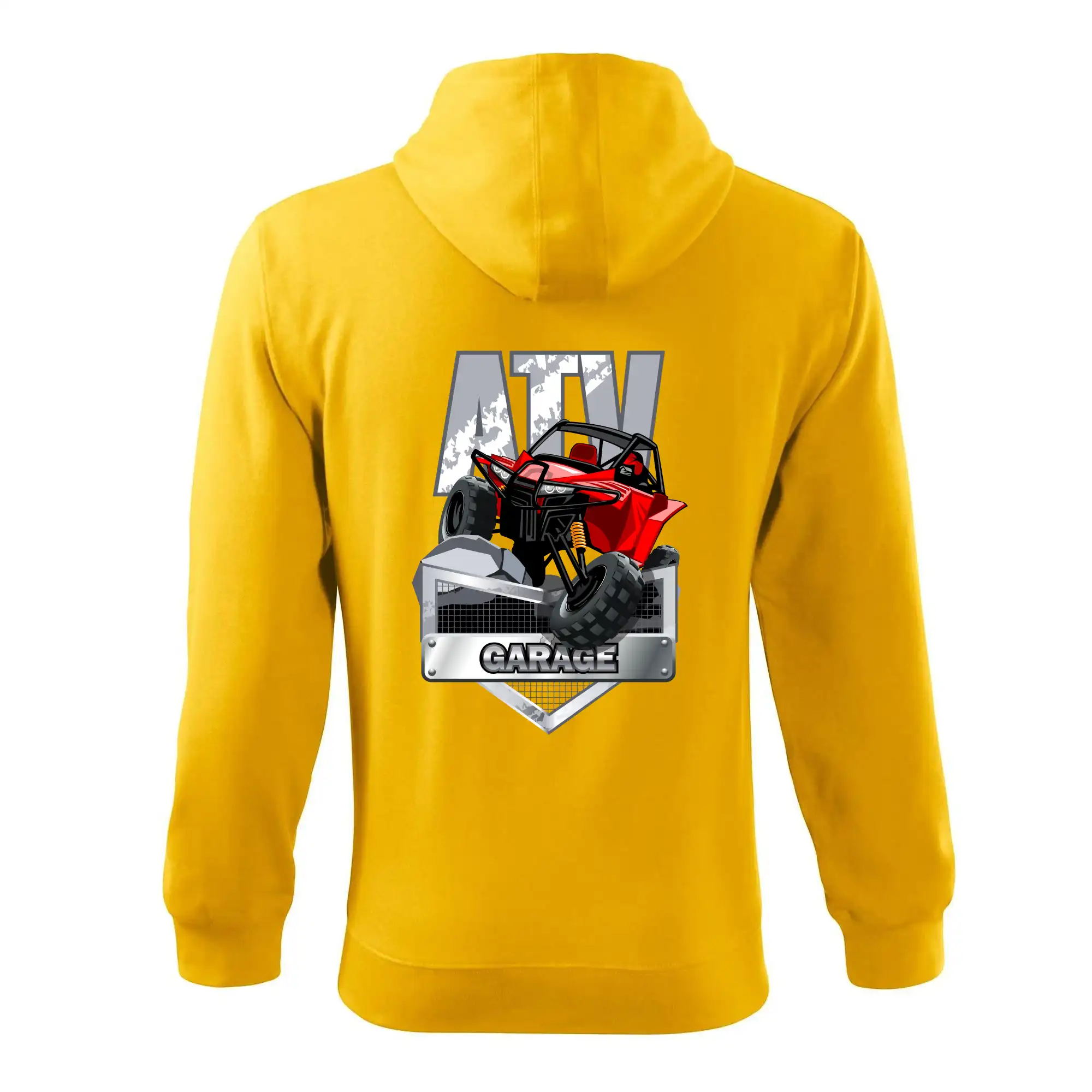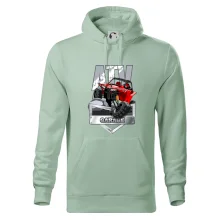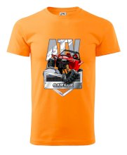 Triko pro motoristy, na kterém je červená čtyřkolka ATV. Motoristické triko se čtyřkolkou musí mít doma každý motorista. Triko s autem je vhodný dárek pro motoristu. Auto na triku je jako živé.