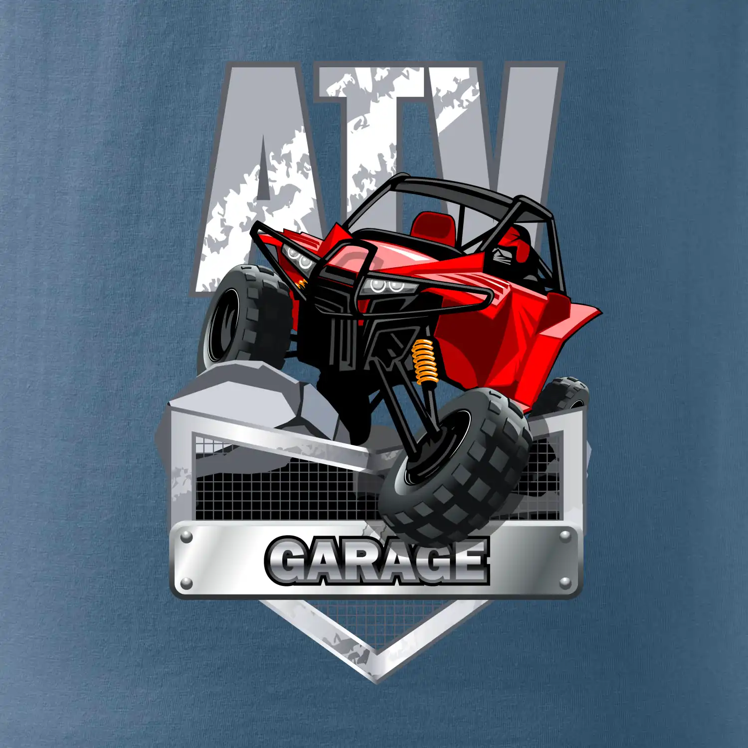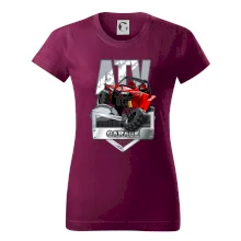 Triko pro motoristy, na kterém je červená čtyřkolka ATV. Motoristické triko se čtyřkolkou musí mít doma každý motorista. Triko s autem je vhodný dárek pro motoristu. Auto na triku je jako živé.