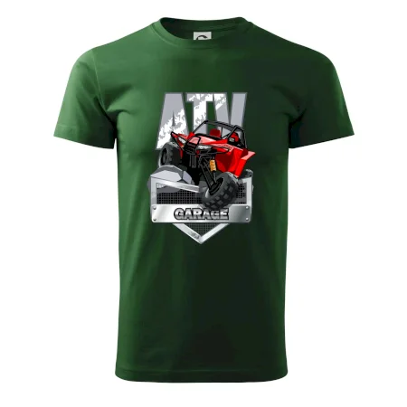 Triko pro motoristy, na kterém je červená čtyřkolka ATV. Motoristické triko se čtyřkolkou musí mít doma každý motorista. Triko s autem je vhodný dárek pro motoristu. Auto na triku je jako živé.