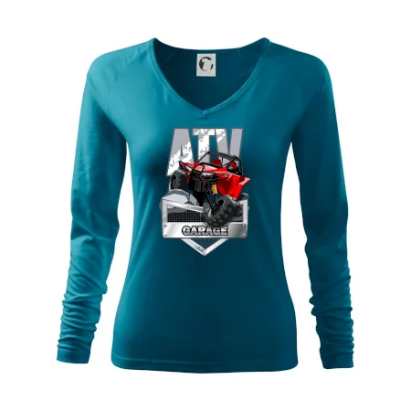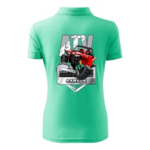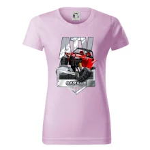 Triko pro motoristy, na kterém je červená čtyřkolka ATV. Motoristické triko se čtyřkolkou musí mít doma každý motorista. Triko s autem je vhodný dárek pro motoristu. Auto na triku je jako živé.