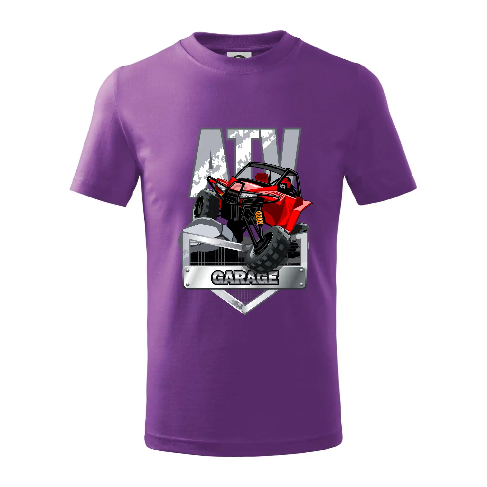 Triko pro motoristy, na kterém je červená čtyřkolka ATV. Motoristické triko se čtyřkolkou musí mít doma každý motorista. Triko s autem je vhodný dárek pro motoristu. Auto na triku je jako živé.