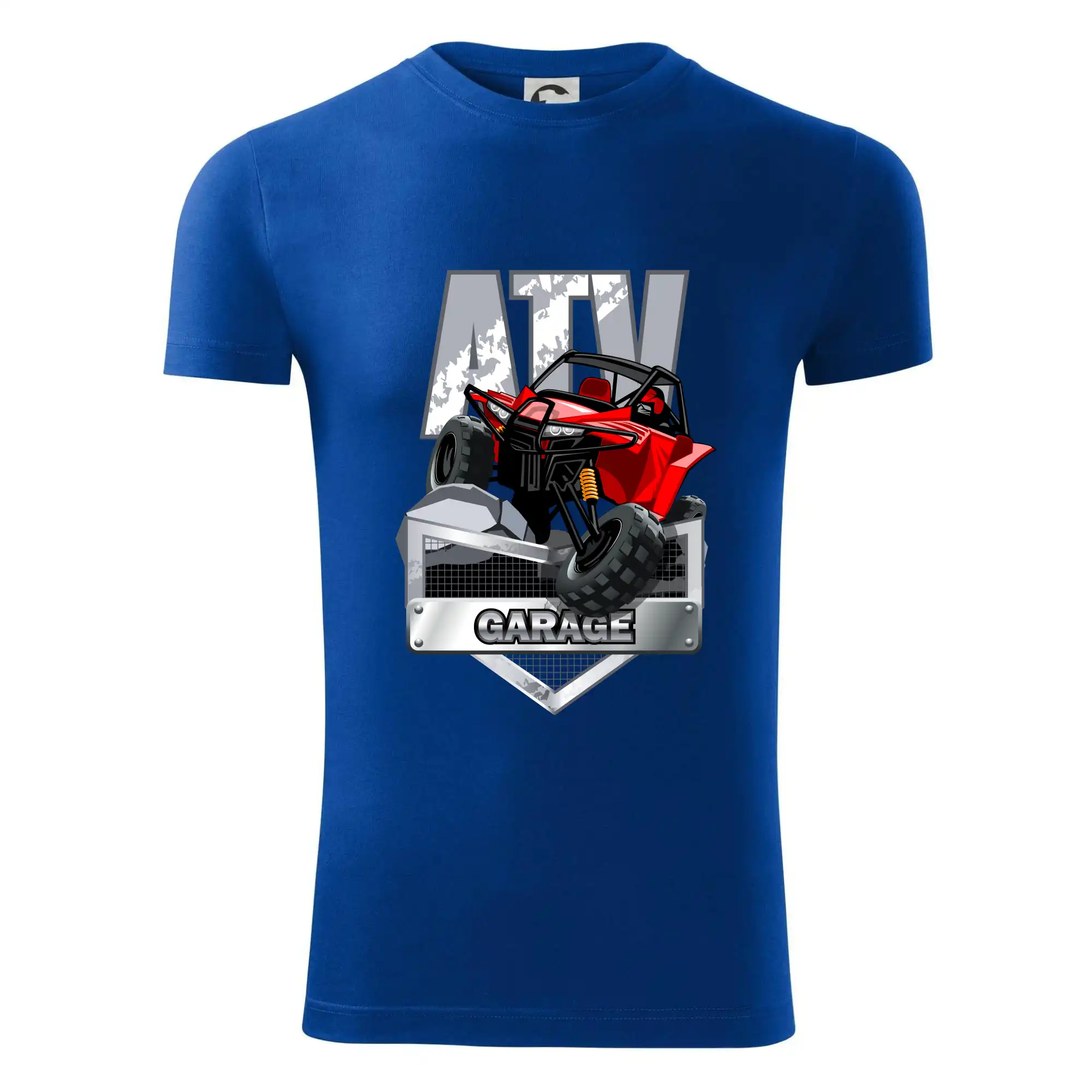Triko pro motoristy, na kterém je červená čtyřkolka ATV. Motoristické triko se čtyřkolkou musí mít doma každý motorista. Triko s autem je vhodný dárek pro motoristu. Auto na triku je jako živé.