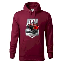 Triko pro motoristy, na kterém je červená čtyřkolka ATV. Motoristické triko se čtyřkolkou musí mít doma každý motorista. Triko s autem je vhodný dárek pro motoristu. Auto na triku je jako živé.