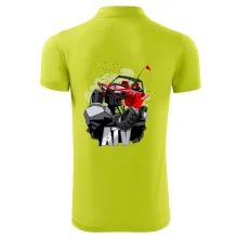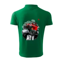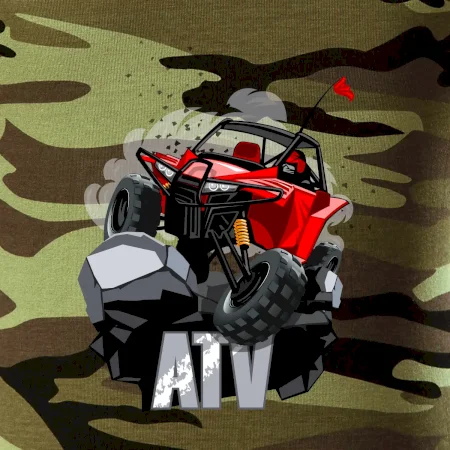 Triko pro motoristy, na kterém je červená buggy čtyřkolka ATV. Motoristické triko kde je off-road čtyřkolka musí mít doma každý motorista. Triko s autem je vhodný dárek pro motoristu. Off road bugina na triku je jako živá, prostě parádní auto.