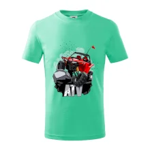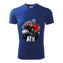 Triko pro motoristy, na kterém je červená buggy čtyřkolka ATV. Motoristické triko kde je off-road čtyřkolka musí mít doma každý motorista. Triko s autem je vhodný dárek pro motoristu. Off road bugina na triku je jako živá, prostě parádní auto.