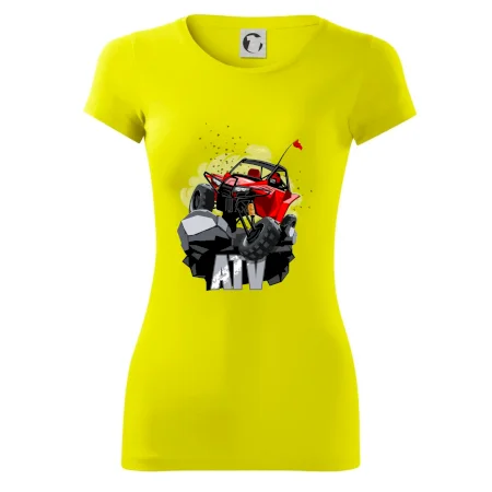 Triko pro motoristy, na kterém je červená buggy čtyřkolka ATV. Motoristické triko kde je off-road čtyřkolka musí mít doma každý motorista. Triko s autem je vhodný dárek pro motoristu. Off road bugina na triku je jako živá, prostě parádní auto.
