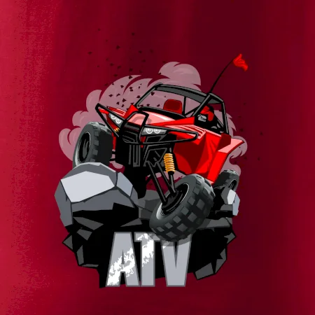 Triko pro motoristy, na kterém je červená buggy čtyřkolka ATV. Motoristické triko kde je off-road čtyřkolka musí mít doma každý motorista. Triko s autem je vhodný dárek pro motoristu. Off road bugina na triku je jako živá, prostě parádní auto.