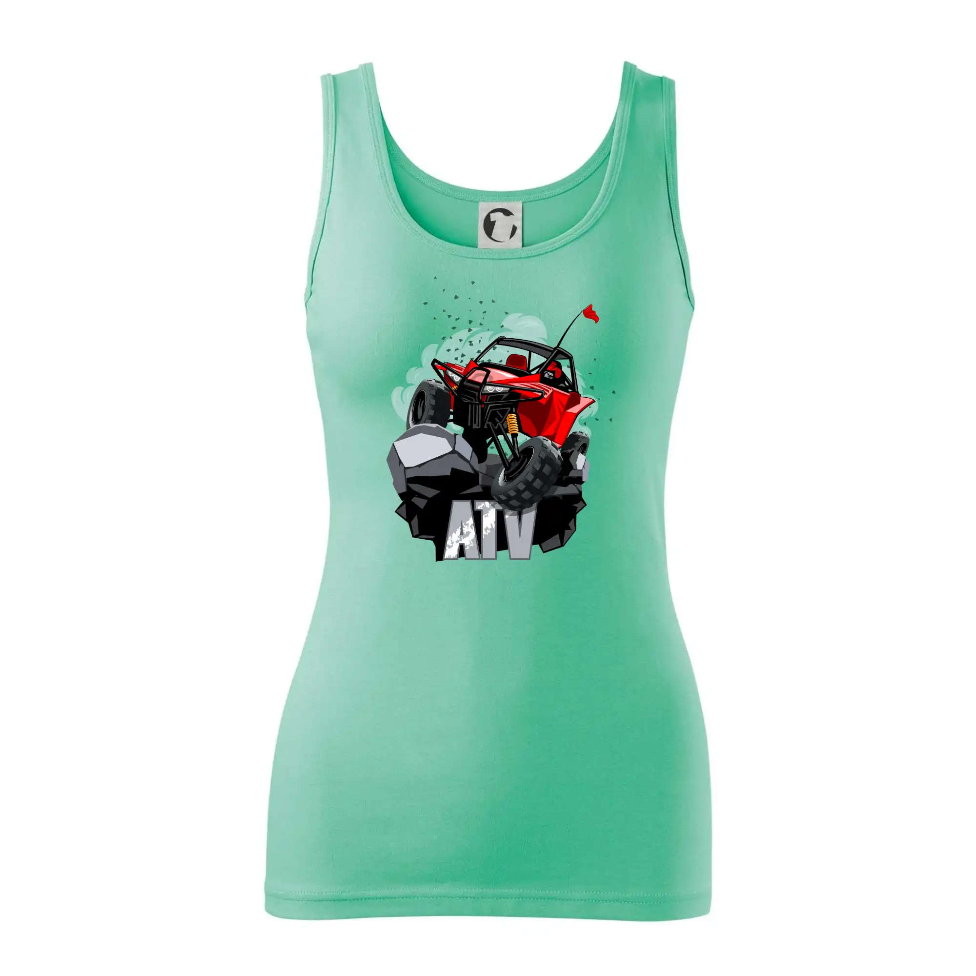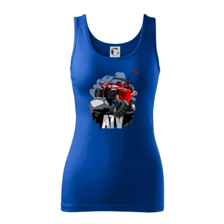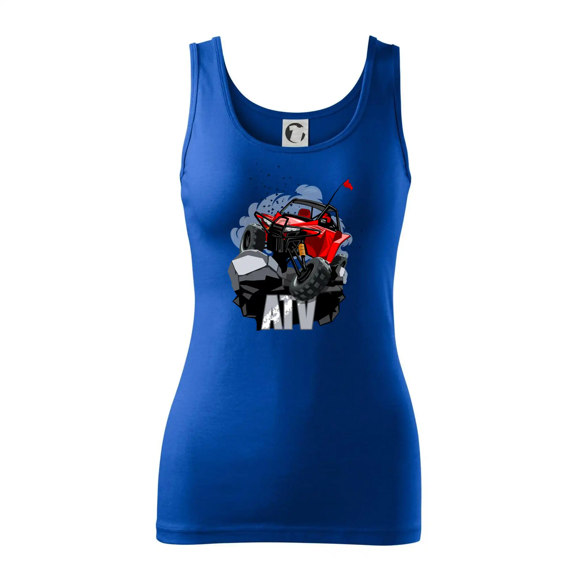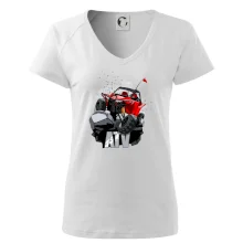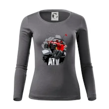 Triko pro motoristy, na kterém je červená buggy čtyřkolka ATV. Motoristické triko kde je off-road čtyřkolka musí mít doma každý motorista. Triko s autem je vhodný dárek pro motoristu. Off road bugina na triku je jako živá, prostě parádní auto.