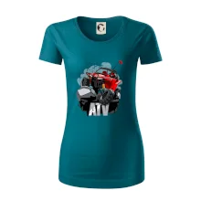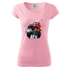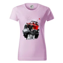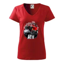 Triko pro motoristy, na kterém je červená buggy čtyřkolka ATV. Motoristické triko kde je off-road čtyřkolka musí mít doma každý motorista. Triko s autem je vhodný dárek pro motoristu. Off road bugina na triku je jako živá, prostě parádní auto.
