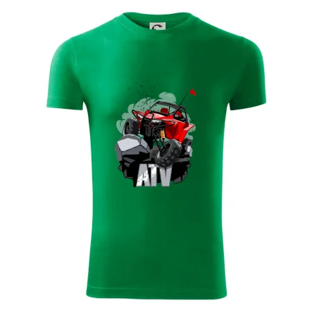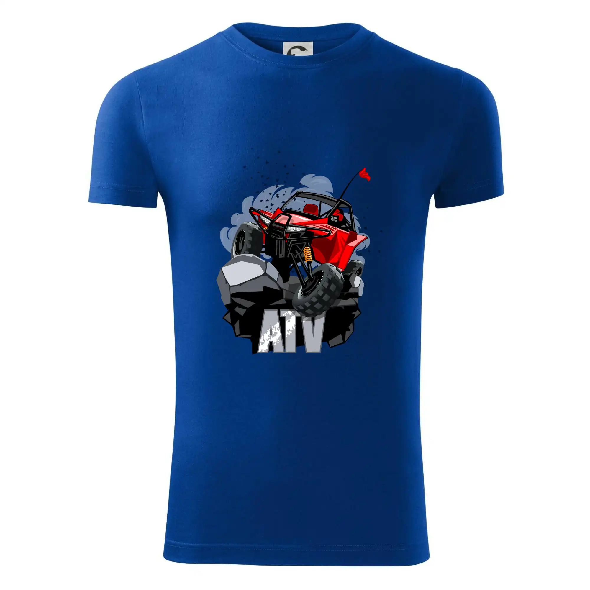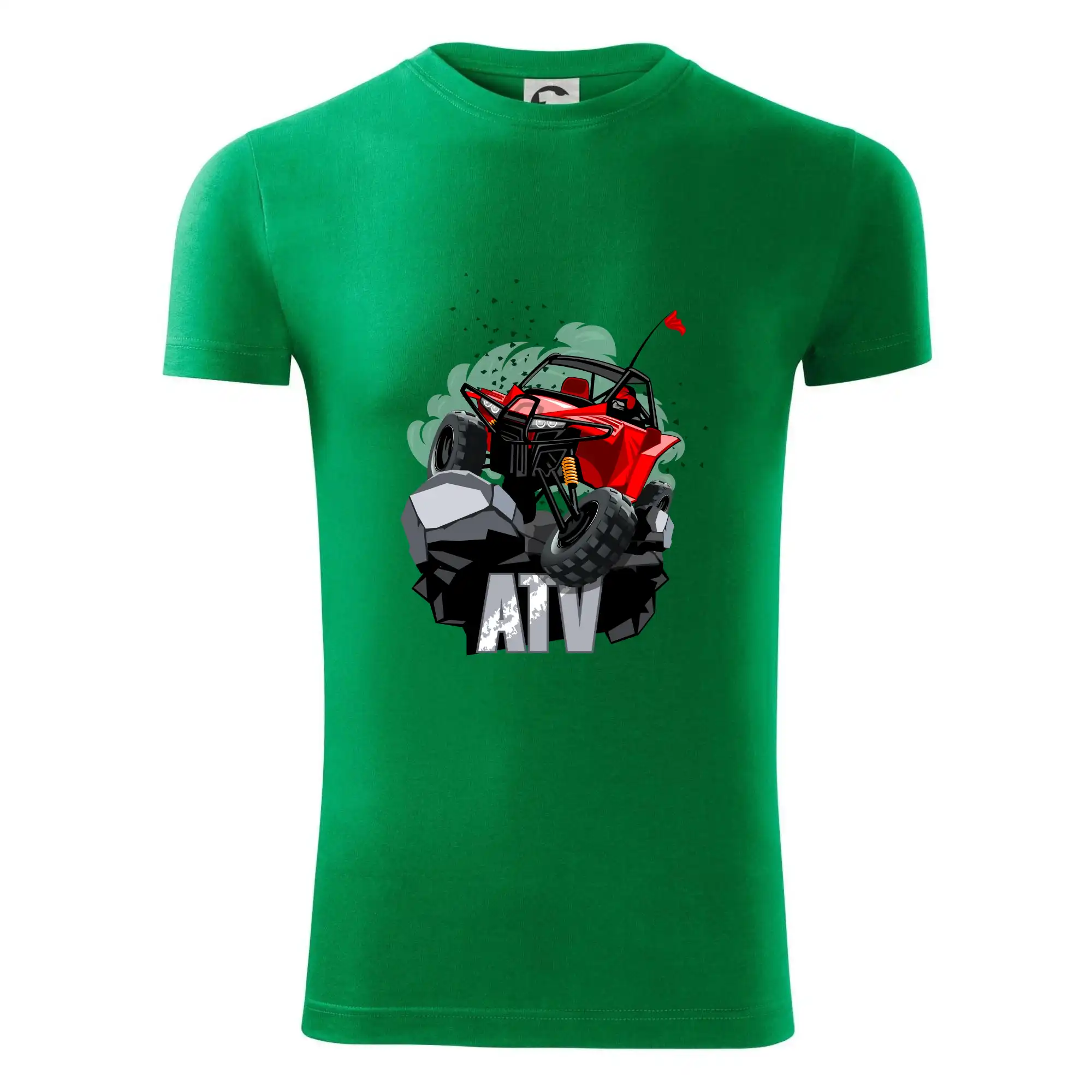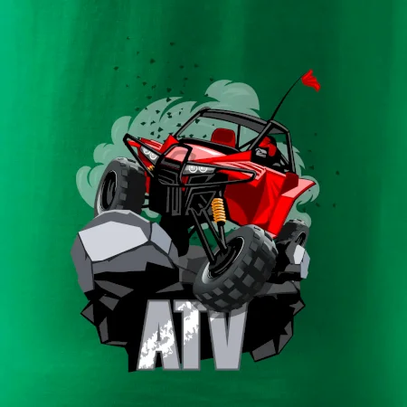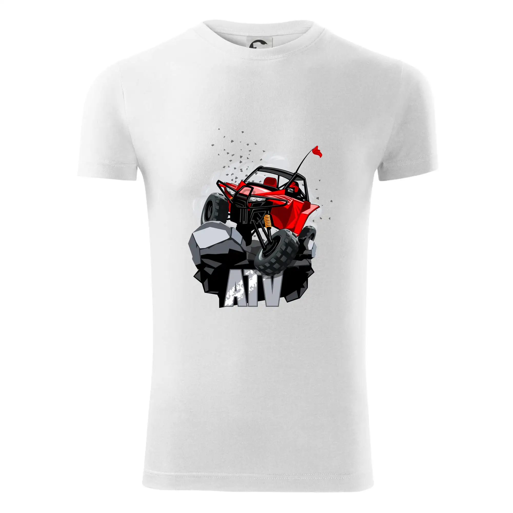 Triko pro motoristy, na kterém je červená buggy čtyřkolka ATV. Motoristické triko kde je off-road čtyřkolka musí mít doma každý motorista. Triko s autem je vhodný dárek pro motoristu. Off road bugina na triku je jako živá, prostě parádní auto.