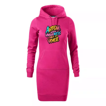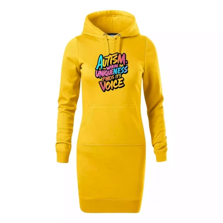 Dámské mikinové šaty MALFINI Snap 419 jsou ideální volbou pro ženy, které hledají pohodlný a stylový kousek pro volný čas nebo každodenní nošení. Lehce vypasovaný střih s bočními švy podtrhuje ženskou siluetu, zatímco kapuce s podšívkou a stahovací šňůrkou dodává ležérní vzhled.