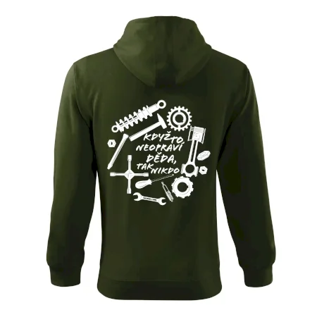 Pánská mikina MALFINI Trendy Zipper 410 je dokonalou kombinací moderního designu, funkčnosti a pohodlí, ideální pro každodenní nošení, práci nebo volný čas. Vyrobena z kvalitní směsi 65 % bavlny a 35 % polyesteru (u barvy 12: 85 % bavlna, 15 % viskóza) s gramáží 300 g/m² a počesanou vnitřní stranou typu Terry, která zajišťuje mimořádnou měkkost a teplo. Mikina má rovný střih s bočními švy, celopropínací kostěný zip a kapuci s podšívkou, kterou lze regulovat pomocí stahovací šňůrky. Vnitřní část průkrčníku je začištěna kontrastní páskou pro větší odolnost a estetiku. Praktické nakládané kapsy ve stylu „klokanky“ s ozdobným prošíváním a elastické lemy s 2:2 žebrovým úpletem obsahujícím 5 % elastanu zaručují perfektní přizpůsobení a pohodlí při pohybu. Vhodná pro potisk nebo výšivku, dostupná v široké škále barev a velikostí S-3XL.