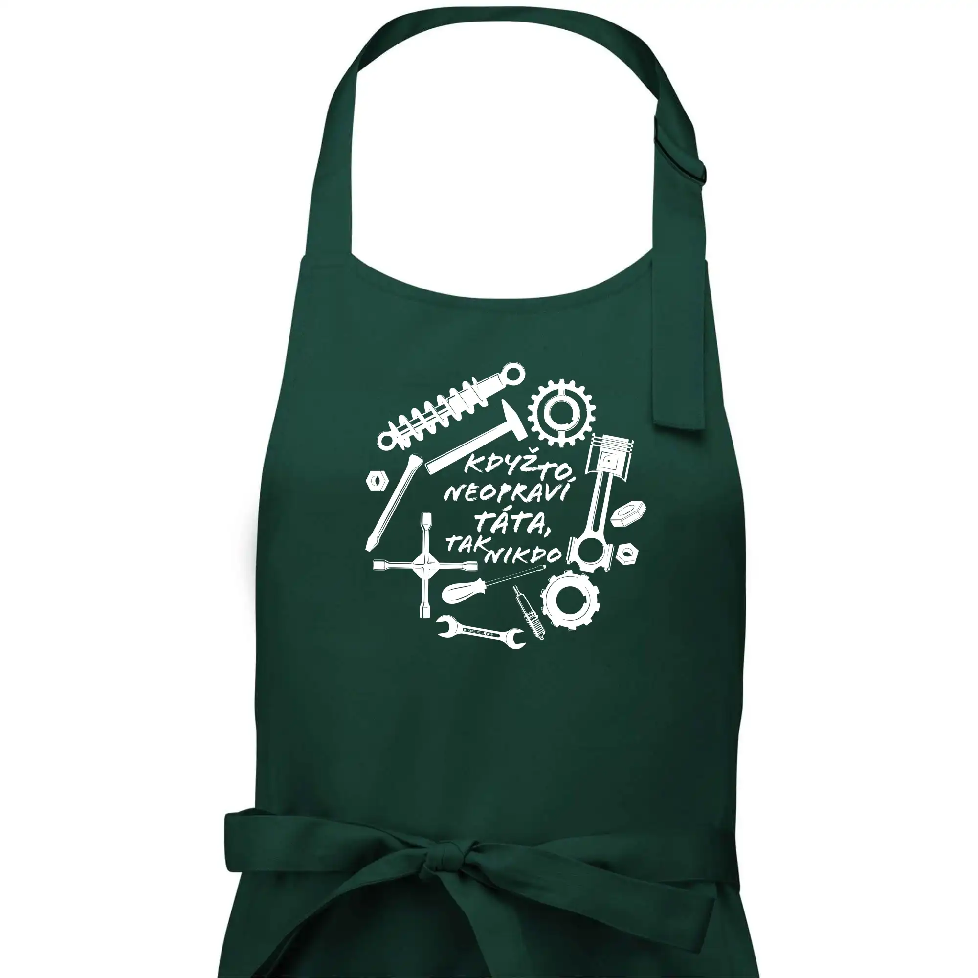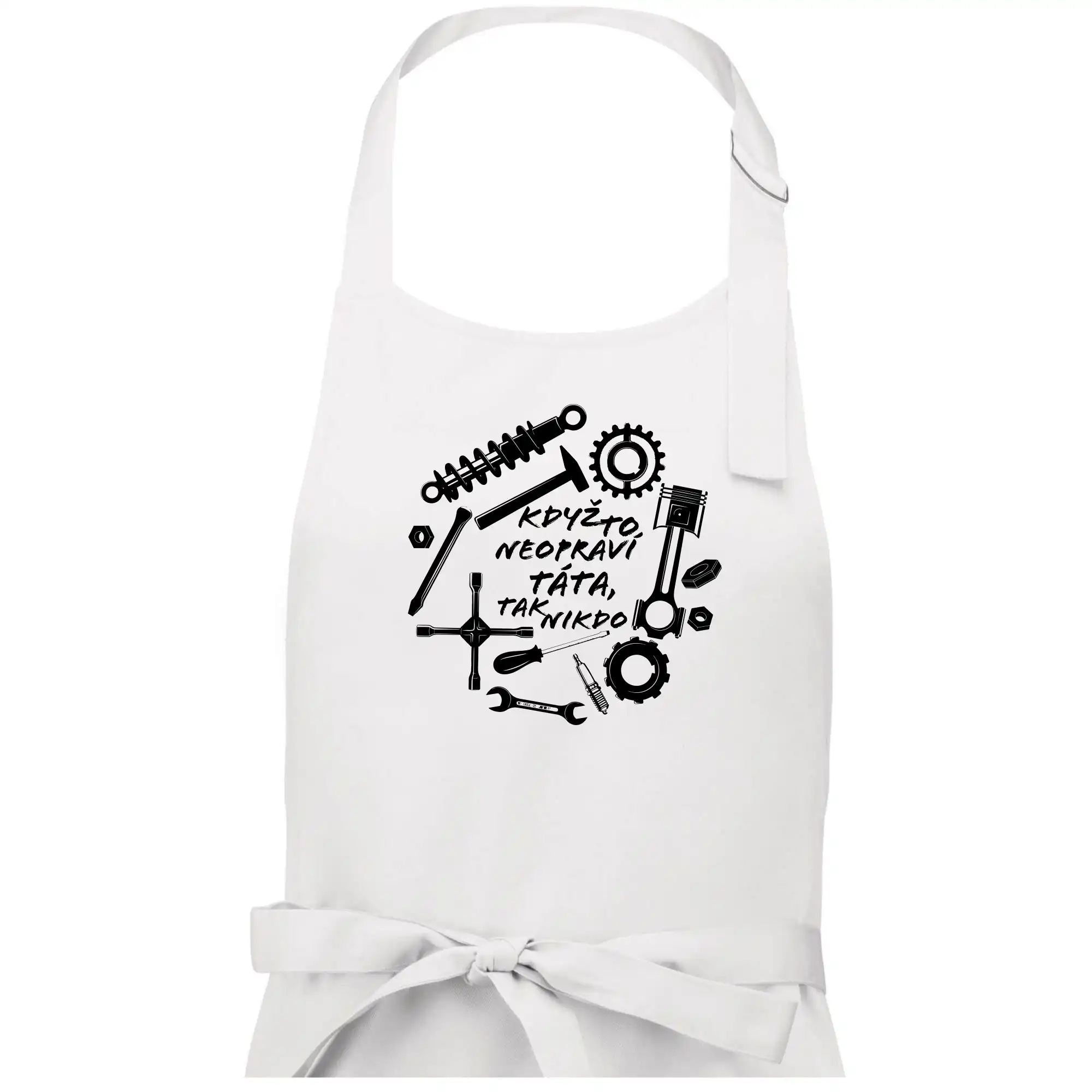 Staň se králem kuchyně s naší bavlněnou zástěrou. Nastavitelná přezka je zárukou, že zástěra bude sedět.