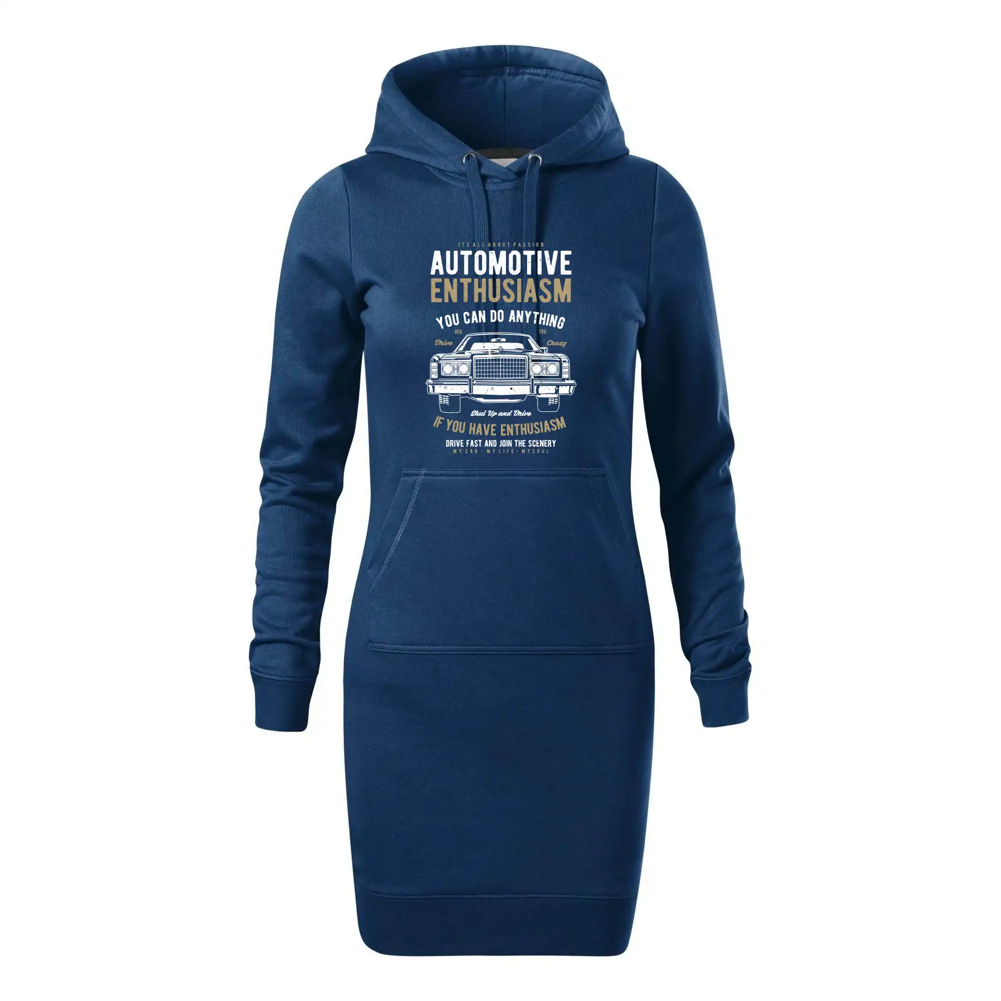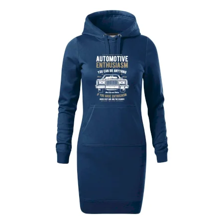 Dámské mikinové šaty MALFINI Snap 419 jsou ideální volbou pro ženy, které hledají pohodlný a stylový kousek pro volný čas nebo každodenní nošení. Lehce vypasovaný střih s bočními švy podtrhuje ženskou siluetu, zatímco kapuce s podšívkou a stahovací šňůrkou dodává ležérní vzhled. Šaty mají délku nad kolena a jsou vybaveny nakládanou kapsou ve stylu „klokanky“. Materiál je měkký a příjemný na dotek díky směsi bavlny a polyesteru s nepočesanou vnitřní stranou.