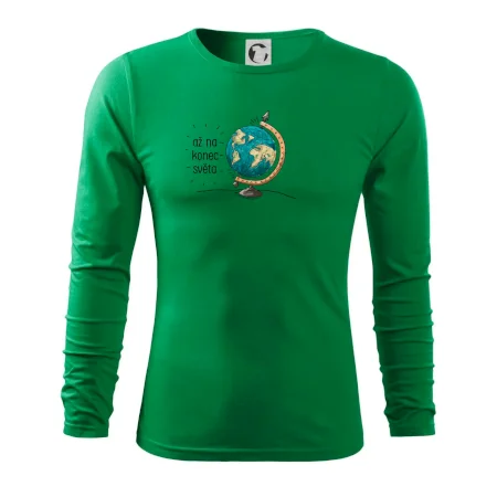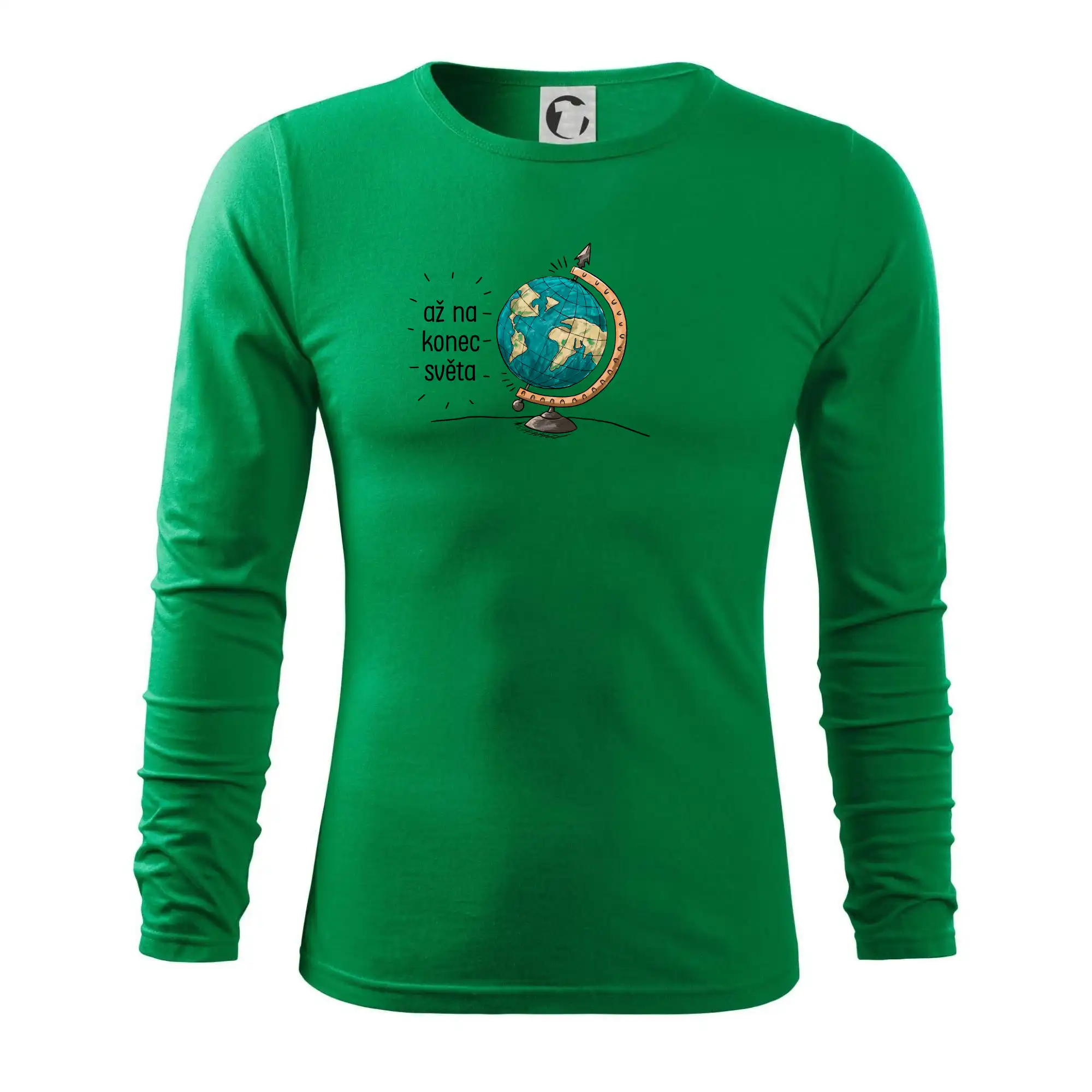 Cestovatelské triko "Až na konec světa" potěší každého cestovatele. Pokud jsi správný cestovatel a máš rád cestování, tohle triko, na kterém je globus, je pro tebe to pravé. Triko s globusem je vhodný dárek pro cestovatele.