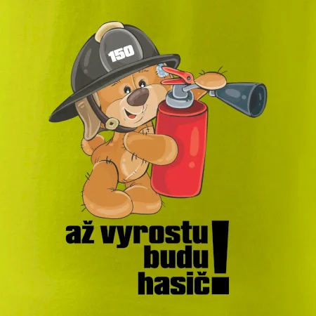 Dětské triko s nápisem "Až vyrostu, budu hasič" je vhodný dárek pro dítě, které by chtělo být hasič. Triko, na kterém je plyšový medvěd hasič, ho určitě potěší! Medvěd požárník uhasí každý požár, a co ty?