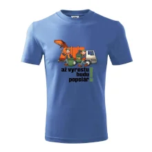 Dětské triko s nápisem "Až vyrostu, budu popelářem" je vhodný dárek pro dítě, které by chtělo být popelář. Triko, na kterém je popelářské auto, ho určitě potěší!