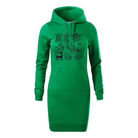 Dámské mikinové šaty MALFINI Snap 419 jsou ideální volbou pro ženy, které hledají pohodlný a stylový kousek pro volný čas nebo každodenní nošení. Lehce vypasovaný střih s bočními švy podtrhuje ženskou siluetu, zatímco kapuce s podšívkou a stahovací šňůrkou dodává ležérní vzhled. Šaty mají délku nad kolena a jsou vybaveny nakládanou kapsou ve stylu „klokanky“. Materiál je měkký a příjemný na dotek díky směsi bavlny a polyesteru s nepočesanou vnitřní stranou.