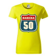 Tričko s motivem „Babička 50“ je inspirované stylovým označením amerických silnic. Design připomíná ikonický highway/route štít, uprostřed s výrazným číslem 50, které oslavuje půl století životní cesty babičky. Kombinace retro rámečku, typografie a jemných dekorací dodá tričku eleganci i hravost – a ukažte všem, že vaše babička jede životem po hlavních trasách radosti a lásky!