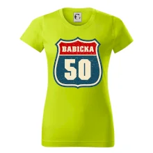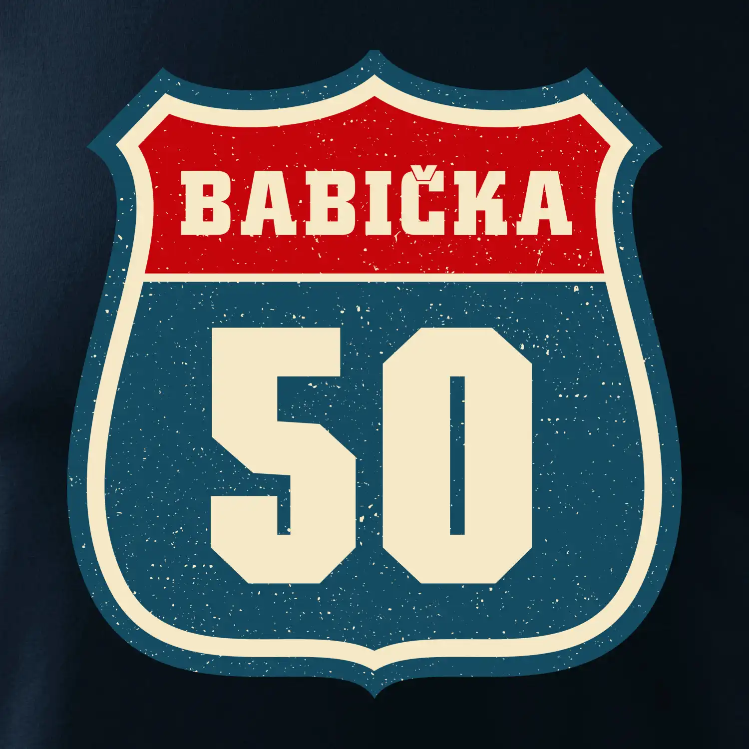 Tričko s motivem „Babička 50“ je inspirované stylovým označením amerických silnic. Design připomíná ikonický highway/route štít, uprostřed s výrazným číslem 50, které oslavuje půl století životní cesty babičky. Kombinace retro rámečku, typografie a jemných dekorací dodá tričku eleganci i hravost – a ukažte všem, že vaše babička jede životem po hlavních trasách radosti a lásky!