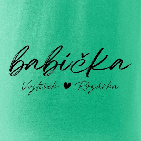 Babička Tričko se jmény dětí psací písmo