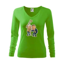 Tolerantnější vypasování dámského střihu, který je vhodný pro všechny typy postavy, ideální délka rukávů a konzervativní výstřih zakončený žebrováním, které skvěle drží tvar.