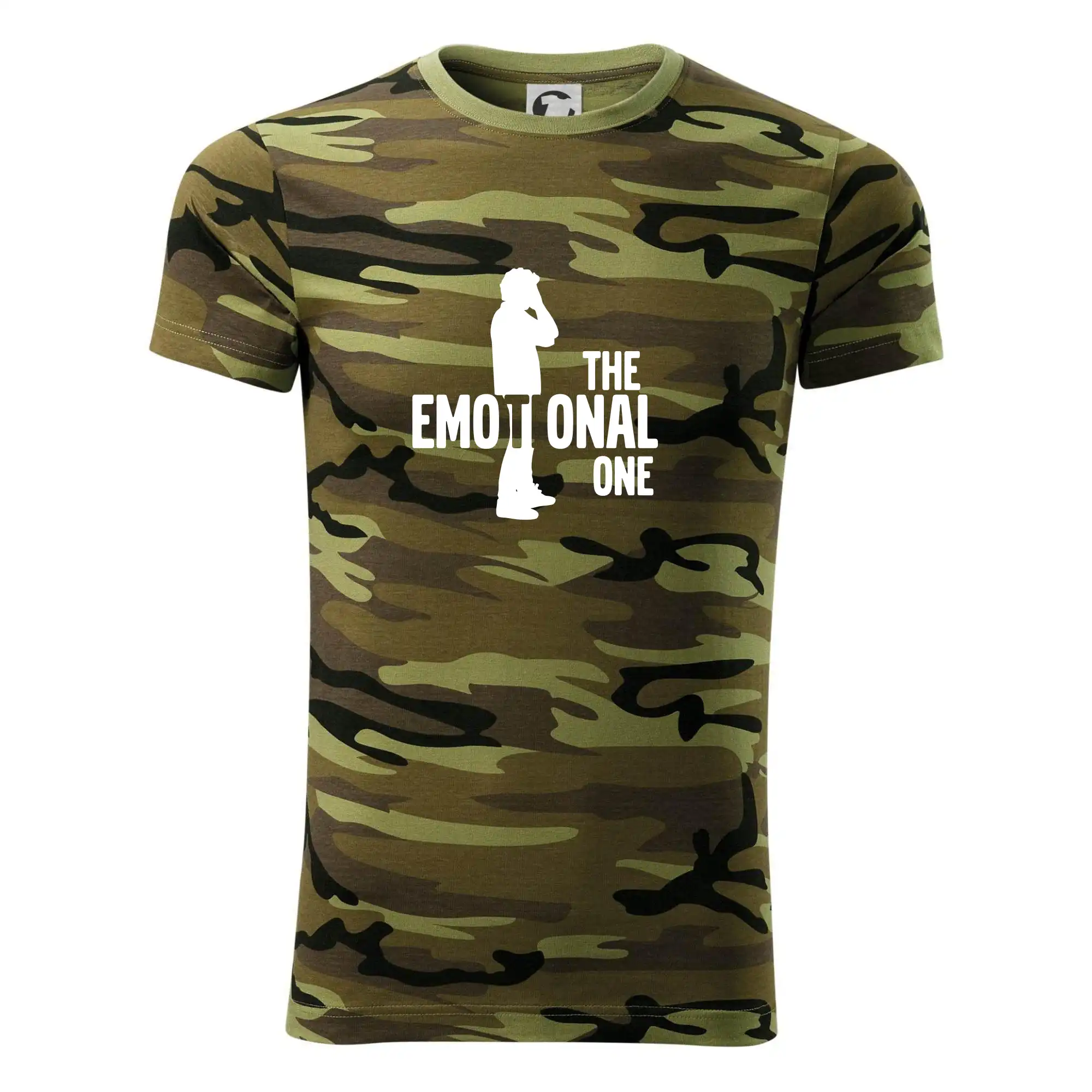 Tričko střední gramáže v barvách camouflage. Střih s bočními švy. Lem průkrčníku ze žebrového úpletu s přídavkem 5 % elastanu. Vnitřní část zadního průkrčníku začištěna páskou v barvě camouflage.