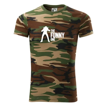 Tričko střední gramáže v barvách camouflage. Střih s bočními švy. Lem průkrčníku ze žebrového úpletu s přídavkem 5 % elastanu. Vnitřní část zadního průkrčníku začištěna páskou v barvě camouflage.
