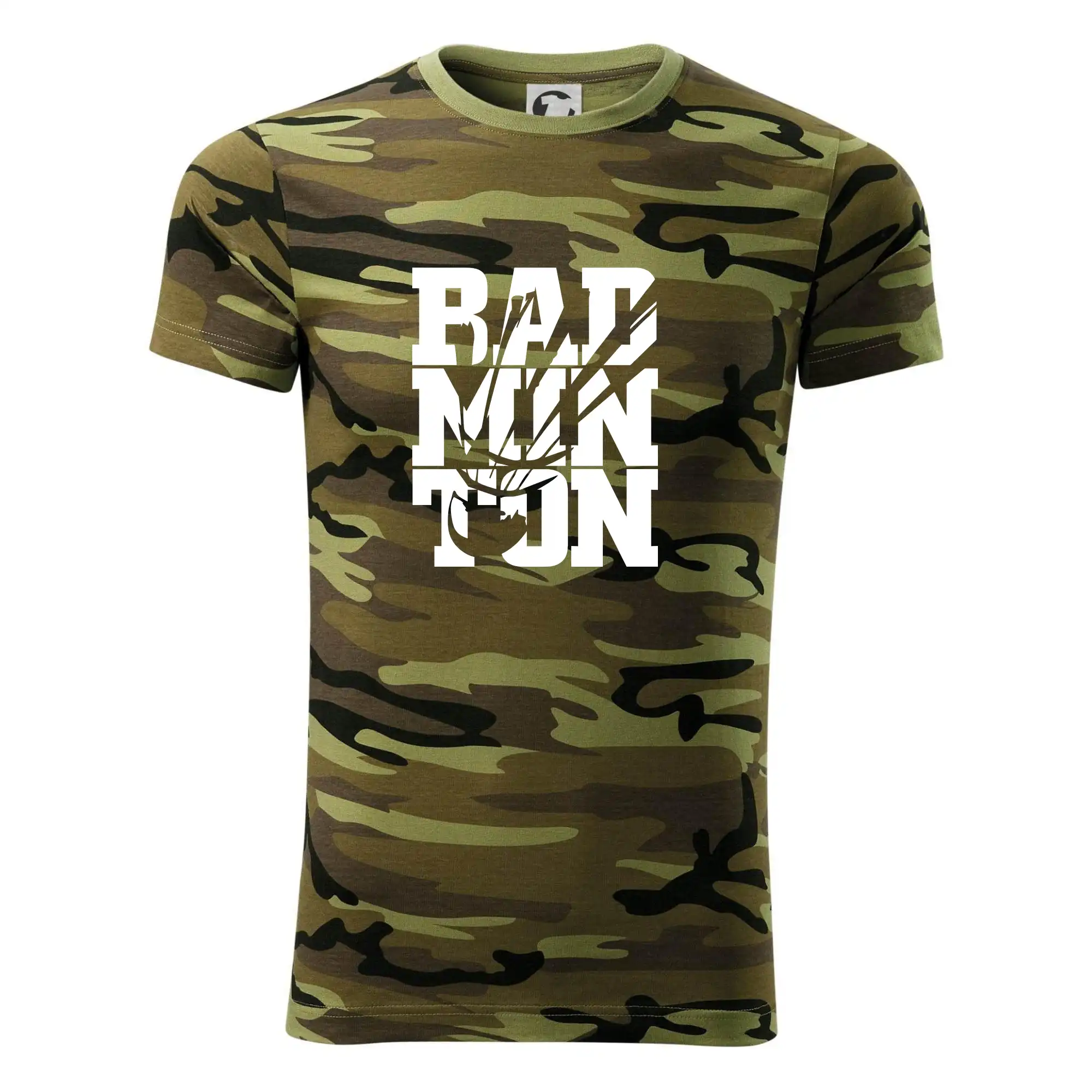 Tričko střední gramáže v barvách camouflage. Střih s bočními švy. Lem průkrčníku ze žebrového úpletu s přídavkem 5 % elastanu. Vnitřní část zadního průkrčníku začištěna páskou v barvě camouflage.