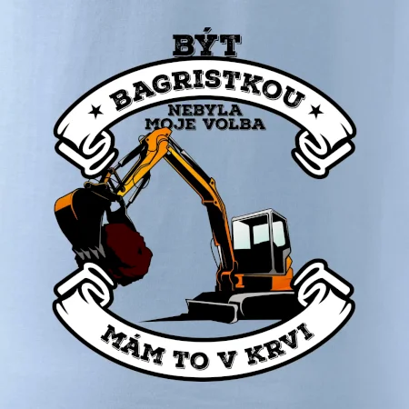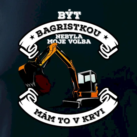 Triko pro bagristu zdobí velký bagr a nápis "Být bagristou nebyla moje volba, mám to v krvi". Triko s bagrem musí mít každý správný bagrista! Super dárek pro bagristu.