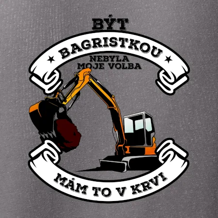 Triko pro bagristu zdobí velký bagr a nápis "Být bagristou nebyla moje volba, mám to v krvi". Triko s bagrem musí mít každý správný bagrista! Super dárek pro bagristu.