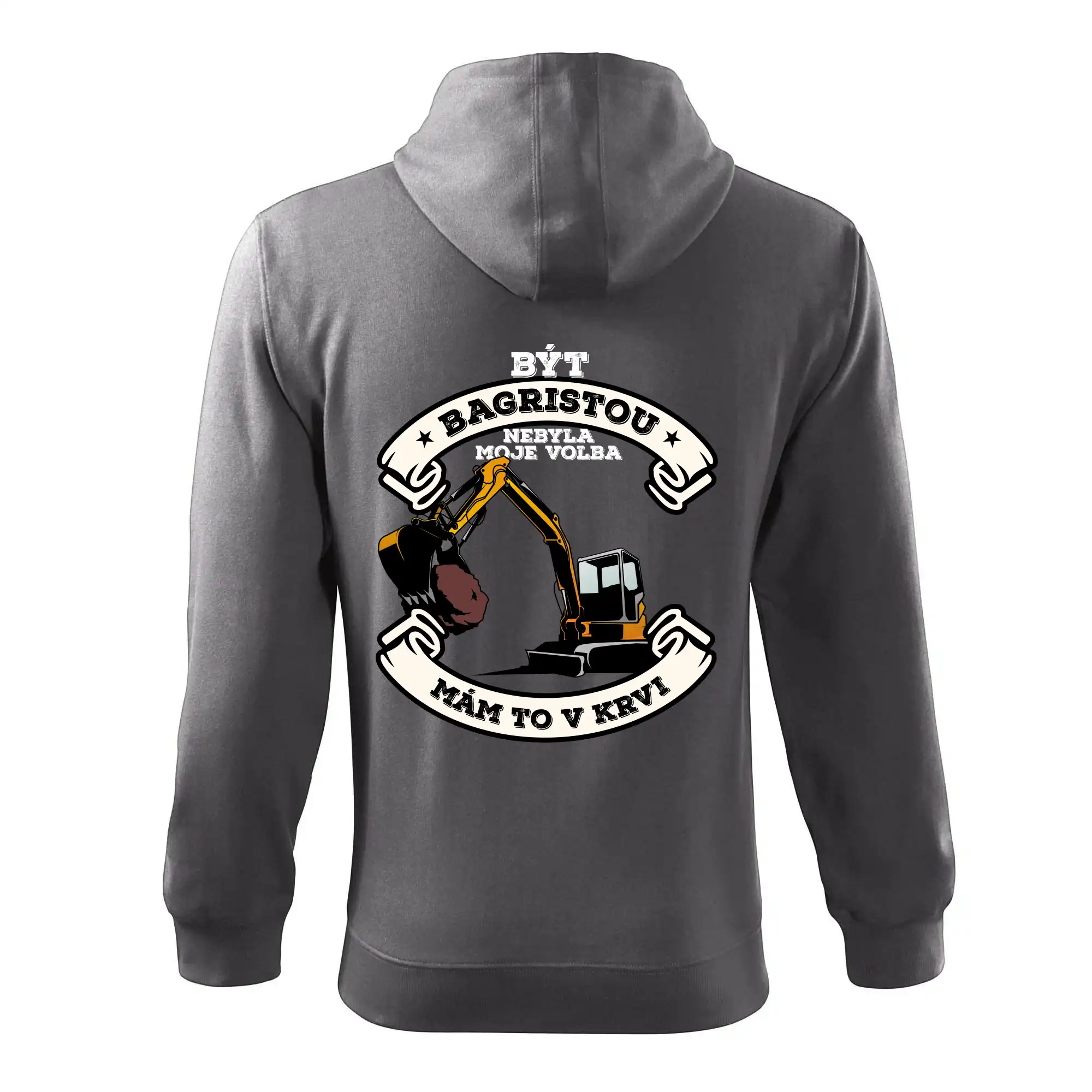 Triko pro bagristu zdobí velký bagr a nápis "Být bagristou nebyla moje volba, mám to v krvi". Triko s bagrem musí mít každý správný bagrista! Super dárek pro bagristu.