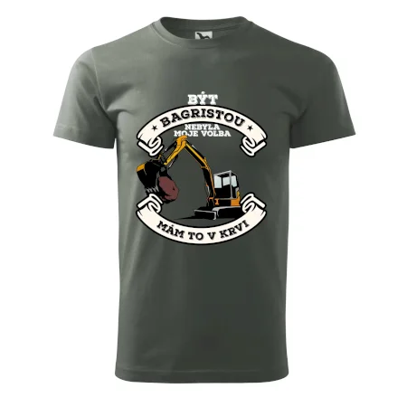 Triko pro bagristu zdobí velký bagr a nápis "Být bagristou nebyla moje volba, mám to v krvi". Triko s bagrem musí mít každý správný bagrista! Super dárek pro bagristu.