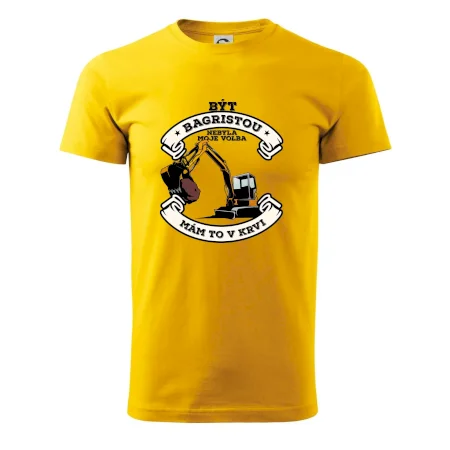 Triko pro bagristu zdobí velký bagr a nápis "Být bagristou nebyla moje volba, mám to v krvi". Triko s bagrem musí mít každý správný bagrista! Super dárek pro bagristu.