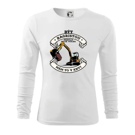 Triko pro bagristu zdobí velký bagr a nápis "Být bagristou nebyla moje volba, mám to v krvi". Triko s bagrem musí mít každý správný bagrista! Super dárek pro bagristu.